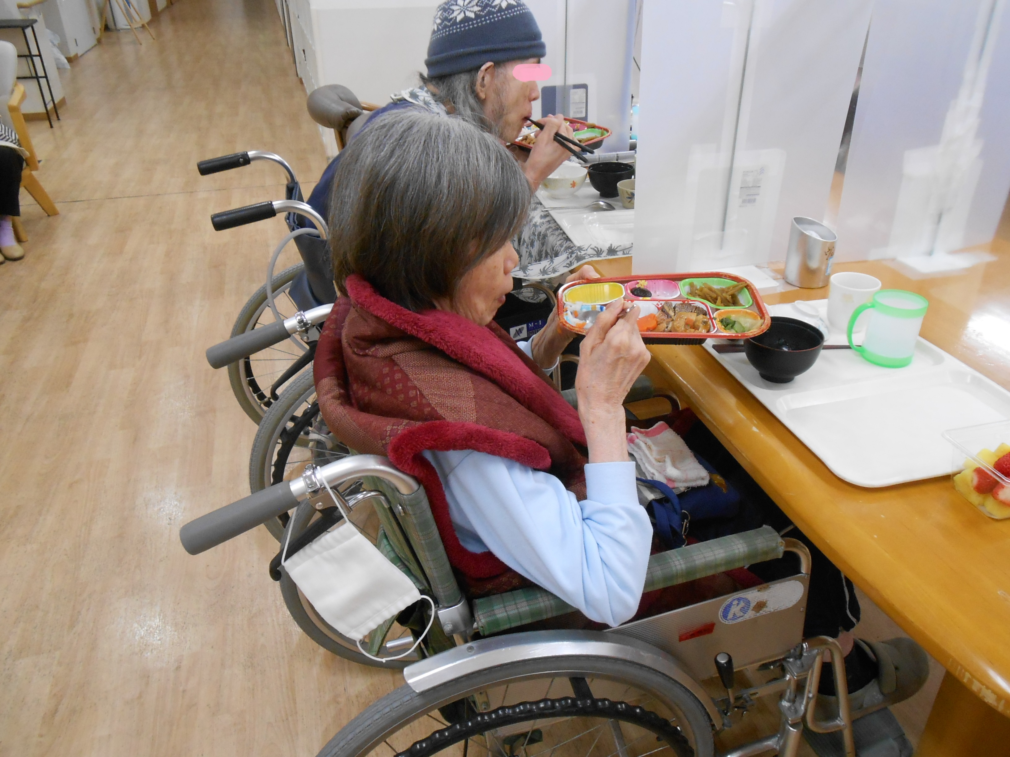 ↑夕食もお正月の特別メニューですね。美味しそうな料理み入居者さまたちも目が釘付けです♪