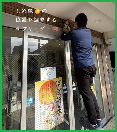 毎年、定番になっている『しめ縄を飾るサブリーダー🐻』