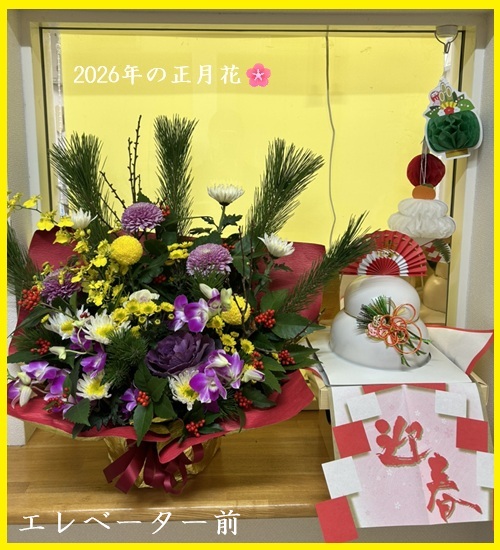 そして、毎年入居者様が楽しみにしている🎍🌸正月花🌸🎍ですが…