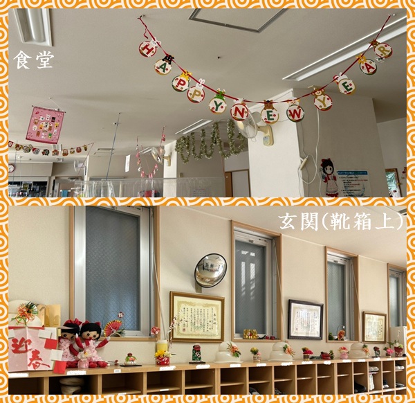 食堂と玄関(靴箱上)の飾り🎍